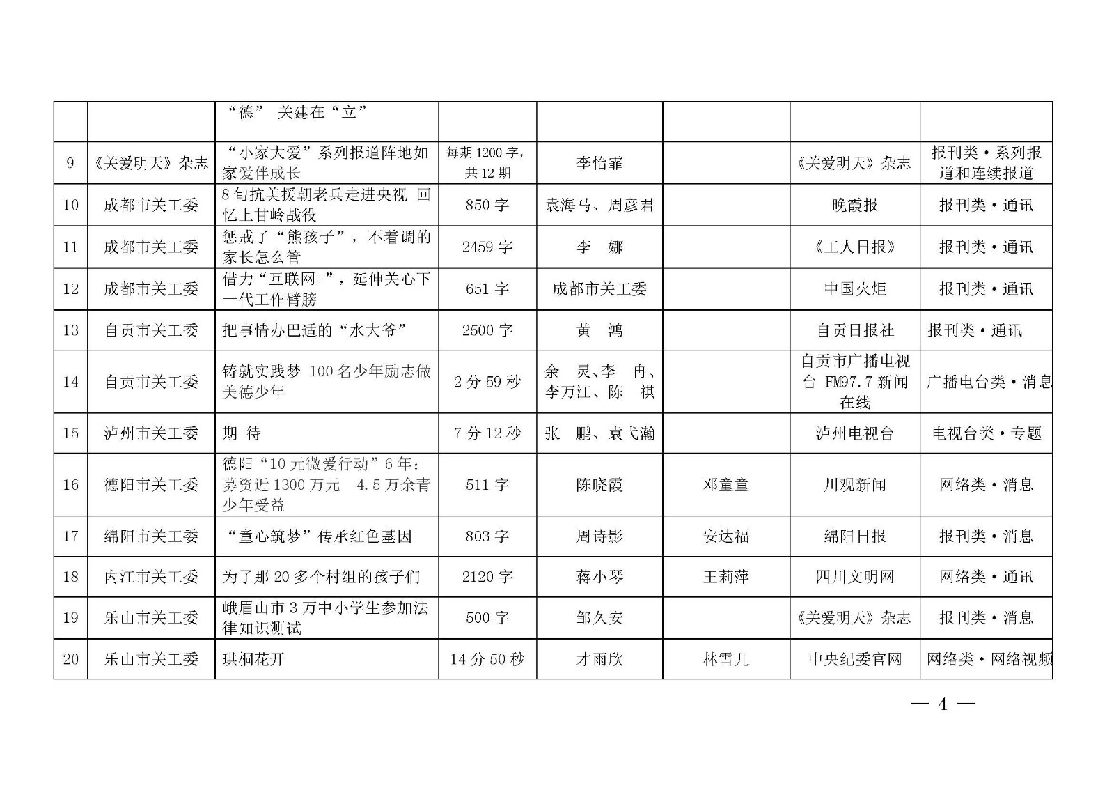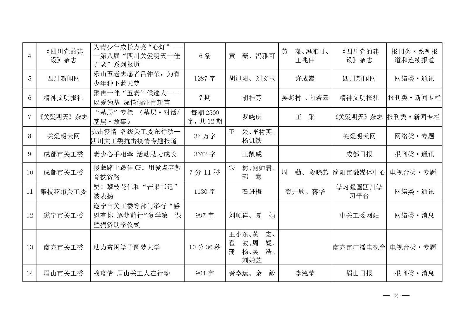 四川日报社、四川广播电视台、四川党的建设杂志社、四川新闻网、精神文明报社、晚霞报社、香港商报社、关爱明天杂志社、